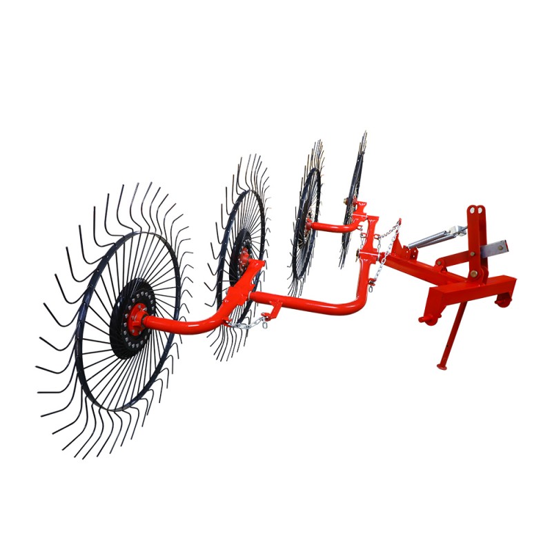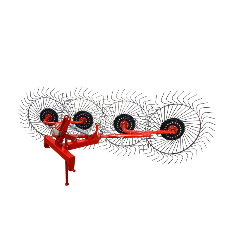 फार्म रेक एक घास की कटाई की मशीनरी है जो घास की स्ट्रिप्स में जमीन पर घास को बिखेरती है। यह मशीन एक पहिएदार ट्रैक्टर के तीन-बिंदु निलंबन उपकरण पर लटकाने के लिए उपयुक्त है। काम करने वाला हिस्सा दांतों को पकड़ने के साथ एक उंगली डिस्क है, और मशीन को क्रमिक रूप से अगली उंगली डिस्क तक उंगली डिस्क द्वारा प्रेषित किया जाता है जब तक कि एक ढीली और हवादार घास की पट्टी नहीं बनती है। डायल के कोण को बदलने से घास की पट्टी की चौड़ाई को समायोजित किया जा सकता है। दांत लंबे स्प्रिंग स्टील के दांत हैं, जिनमें अच्छा कंघी प्रभाव और मजबूत नकल प्रदर्शन होता है। दांत व्हील हब पर एक रेडियल कॉन्फ़िगरेशन बनाते हैं, जो हवा के प्रभाव को समाप्त कर सकता है और धूल के पारित होने की सुविधा प्रदान कर सकता है। जमीन पर उंगली डिस्क के दबाव को नियंत्रित करने के लिए एक तनाव वसंत का उपयोग करते हुए, लैंडिंग दबाव को फसल और जमीन की स्थिति के अनुसार समायोजन प्लेट को खींचकर समायोजित किया जा सकता है। फार्म रेक में एक सरल संरचना, आसान संचालन, विश्वसनीय उपयोग, कुछ दोष, उच्च दक्षता और अच्छी काम की गुणवत्ता है। आसान रखरखाव और अच्छा पावर मिलान प्रदर्शन।